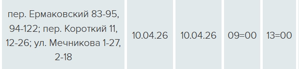 Свет будет отключен с 09:00 до 13:00 в связи с техническим обслуживанием оборудования ЛЭП-0,4 кВ Л-2 ТП-032.