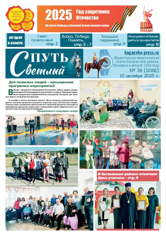 ЧИТАЙТЕ ТАКЖЕ: Главные темы выпуска прошлого номера — 3 октября вышел новый номер газеты «Светлый путь» Багаевского района