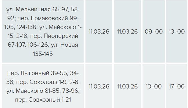 На пяти улицах свет будет отключен с 09:00 до 13:00 в связи с техническим обслуживанием оборудования ТП-344, еще на четырех улицах — с 13:00 до 17:00 — в связи с техническим обслуживанием оборудования ТП-340.