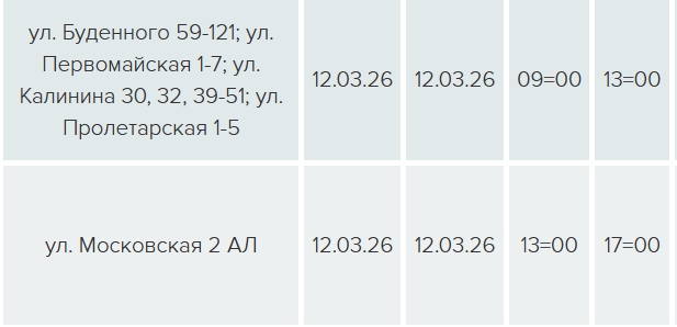 На четырех улицах свет будет отключен с 09:00 до 13:00 в связи с техническим обслуживанием ЛЭП-0,4 кВ Л-1 ТП-317, еще на одной улице — с 13:00 до 17:00 — в связи с техническим обслуживанием оборудования ТП-341.