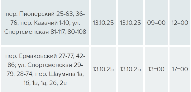 На трех улицах свет будет отключен с 09:00 до 12:00 в связи с техническим обслуживанием ЛЭП-0,4 кВ Л-1 ТП-044, еще на трех улицах — с 13:00 до 17:00 — в связи с техническим обслуживанием ЛЭП-0,4 кВ Л-2 ТП-044.