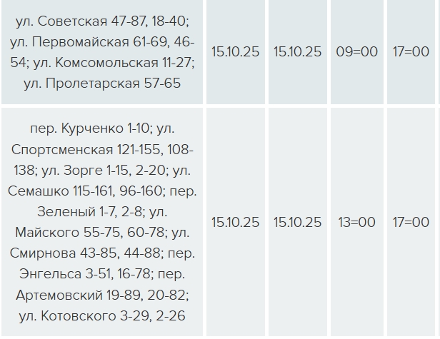 На четырех улицах свет будет отключен с 09:00 до 12:00 в связи с техническим обслуживанием ЛЭП-0,4 кВ Л-4 ТП-314, еще на десяти улицах — с 13:00 до 17:00 — в связи техническим обслуживанием оборудования ТП-308.