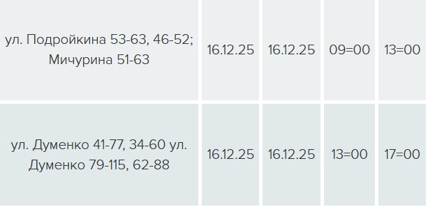 На двух улицах свет будет отключен с 09:00 до 13:00 в связи с техническим обслуживанием ЛЭП-0,4 кВ Л-2 ТП-327, еще на двух улицах — с 13:00 до 17:00 — в связи с техническим обслуживанием ЛЭП-0,4 кВ Л-3 ТП-046.