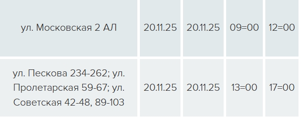 На одной улице свет будет отключен с 09:00 до 12:00 в связи с техническим обслуживанием ТП-341, еще на трех улицах — с 13:00 до 17:00 — в связи с техническим обслуживанием ТП-343.