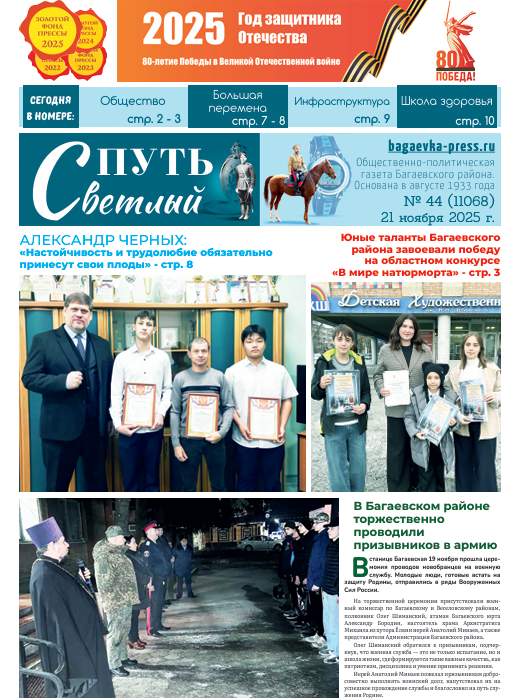 ЧИТАЙТЕ ТАКЖЕ: Главные темы выпуска прошлого номера — 14 ноября вышел новый номер газеты «Светлый путь» Багаевского района
