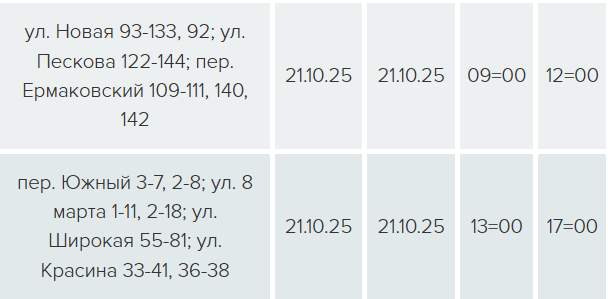 На трех улицах свет будет отключен с 09:00 до 12:00 в связи с техническим обслуживанием ЛЭП-0,4 кВ Л-2 ТП-302, еще на четырех улицах — с 13:00 до 17:00 — в связи с техническим обслуживанием ЛЭП-0,4 кВ Л-2 ТП-311.