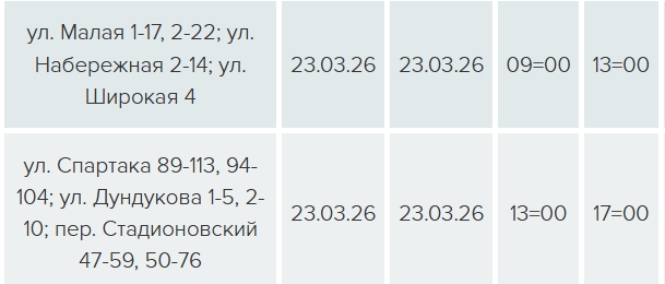 На трёх улицах свет будет отключен с 09:00 до 13:00 в связи с техническим обслуживанием ТП-332, еще на трёх улицах — с 13:00 до 17:00 — в связи с техническим обслуживанием ТП-303.