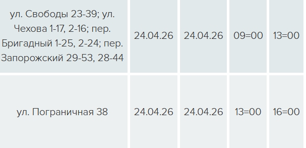На четырех улицах свет будет отключен с 09:00 до 13:00 в связи с техническим обслуживанием ЛЭП-0,4 кВ Л-3 ТП-319, еще на одной улице — с 13:00 до 16:00 — в связи с техническим обслуживанием ЛЭП-0,4 кВ Л-3 ТП-307.