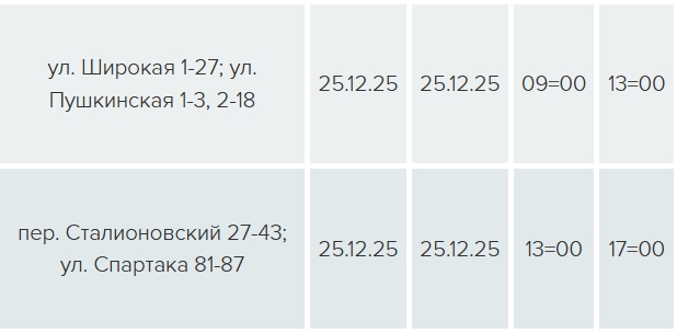 На двух улицах свет будет отключен с 09:00 до 13:00 в связи с техническим обслуживанием ЛЭП-0,4 кВ Л-3 ТП-326, еще на двух улицах — с 13:00 до 17:00 — в связи с техническим обслуживанием ЛЭП-0,4 кВ Л-5 ТП-318.