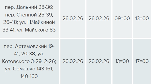 На четырех улицах свет будет отключен с 09:00 до 13:00 в связи с техническим обслуживанием ЛЭП-0,4 кВ Л-2 ТП-336, еще на трех улицах — с 13:00 до 17:00 — в связи с техническим обслуживанием ЛЭП-0,4 кВ Л-3 ТП-308.