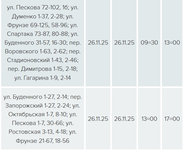 В ст. Багаевской 26 ноября на 15-ти улицах планируется отключение электроэнергии