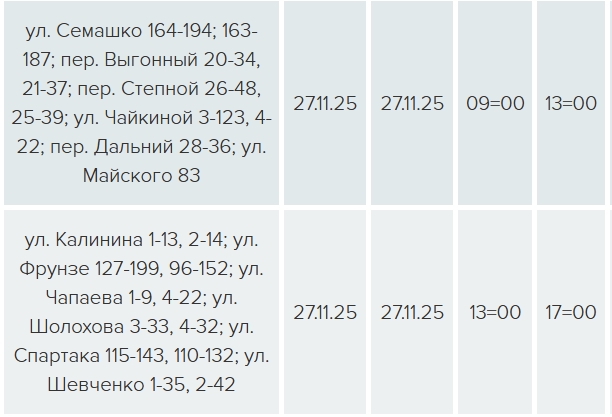 В ст. Багаевской 27 ноября на шести улицах планируется отключение электроэнергии