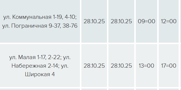 На двух улицах свет будет отключен с 09:00 до 12:00 в связи с техническим обслуживанием ЛЭП-0,4 кВ Л-1 ТП-307, еще на трех улицах — с 13:00 до 17:00 — в связи с техническим обслуживанием ЛЭП-0,4 кВ Л-1 ТП-332.
