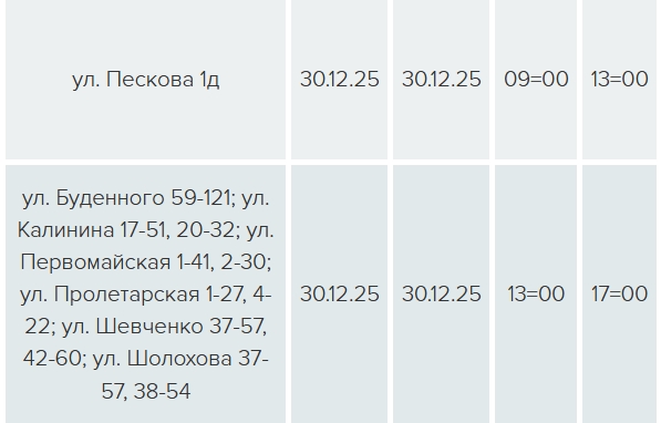 В ст. Багаевской 30 декабря на семи улицах планируется отключение электроэнергии