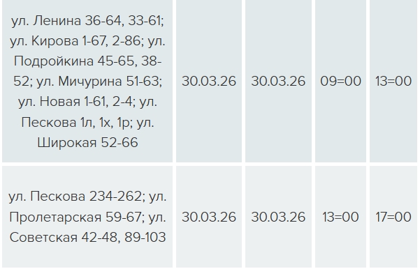 На семи улицах свет будет отключен с 09:00 до 13:00 в связи с техническим обслуживанием оборудования ТП-327, еще на трёх улицах — с 13:00 до 17:00 — в связи с техническим обслуживанием оборудования ТП-343.