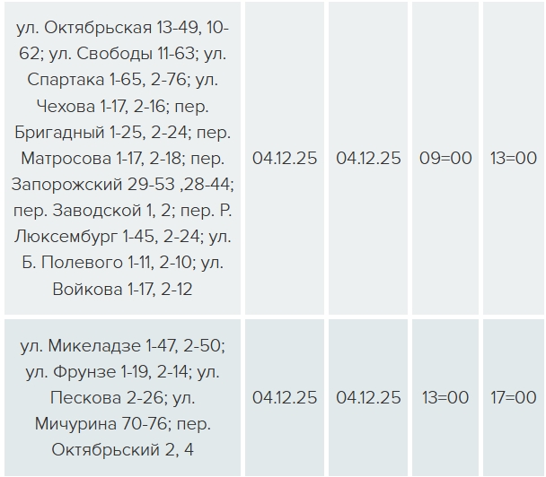 На 11-ти улицах свет будет отключен с 09:00 до 12:00 в связи с техническим обслуживанием оборудования ТП-319, еще на пяти улицах — с 13:00 до 17:00 — в связи с техническим обслуживанием оборудования ТП-322.