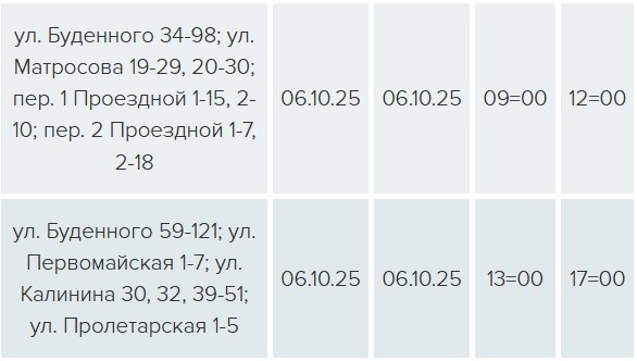 В ст. Багаевской 6 октября на восьми улицах планируется отключение электроэнергии