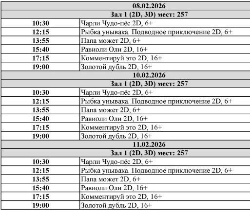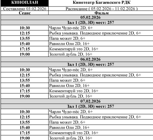 Расписание сеансов кинотеатра районного Дома культуры с 5 по 11 февраля