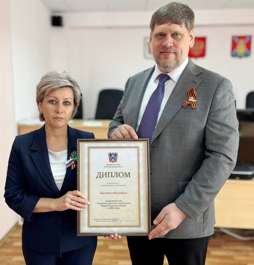 Багаевский район удостоен Диплома Правительства Ростовской области 1 степени за высокое качество управления бюджетным процессом в 2024 году