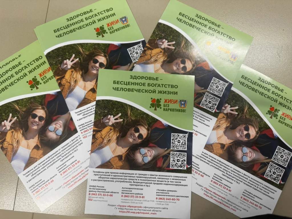 Кроме того, в многофункциональном молодежном центре Багаевского района прошла акция для молодёжи по раздаче листовок антинаркотической направленности.
