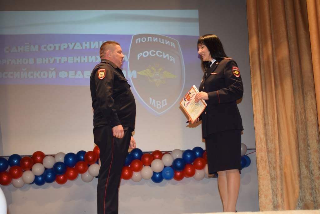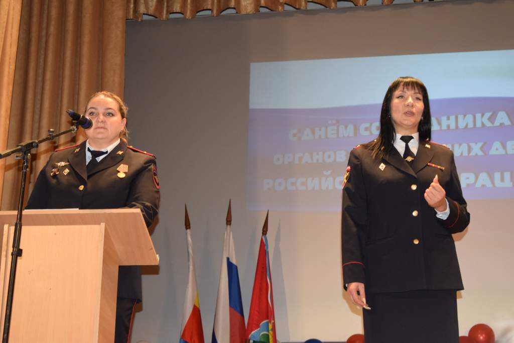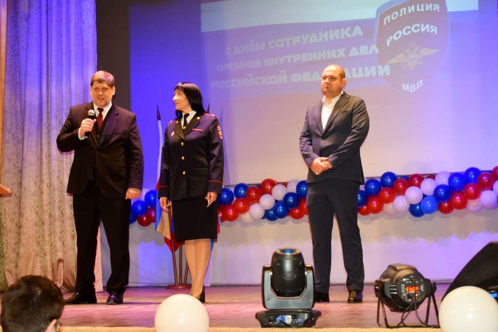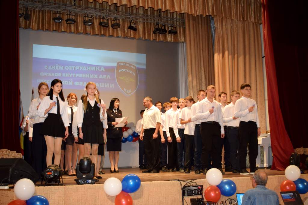 История органов внутренних дел — это летопись мужества и преданности многих поколений защитников Отечества. Для нынешних и будущих сотрудников звучали лучшие музыкальные номера: Леонид Ячушко «Господа офицеры», хореографический коллектив ДШИ «Каприз» «Ты неси, меня река», Даниил Карпов «Наша служба и опасна, и трудна», полицейский класс БСОШ№2, Наталья Минибаева «С праздником!», хореографический коллектив ЦДО «Грация» «Русский мир», Олег Кузьменков «Женщина воздух, женщина вода», Кирилл Чугунов «Там, за туманами». Под песню Екатерины Немчиновой «Родина мать!» зал стоя аплодировал героям торжества.