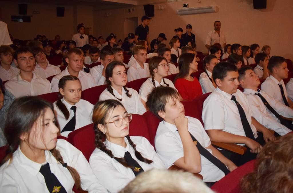 Ученики полицейских классов поклялись: быть верным Отечеству, следовать традициям доблести, отваги и взаимопомощи, стремиться к победам в учебе и спорте, быть примером для окружающих, чтить память героев, защищавших свободу и независимость Родины, быть патриотом и достойным гражданином России.