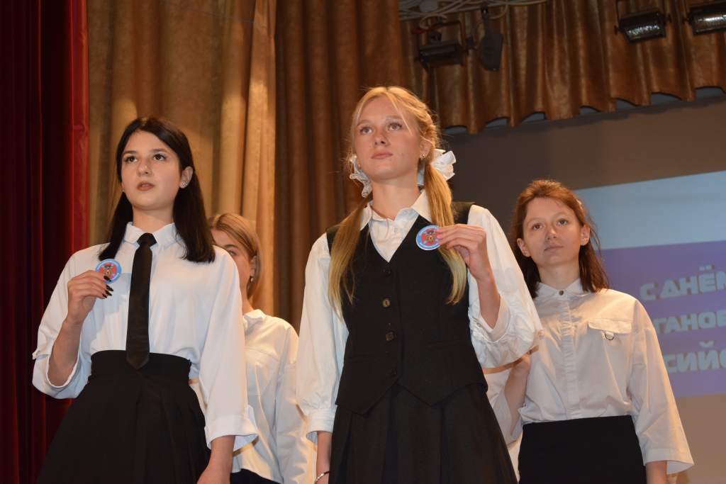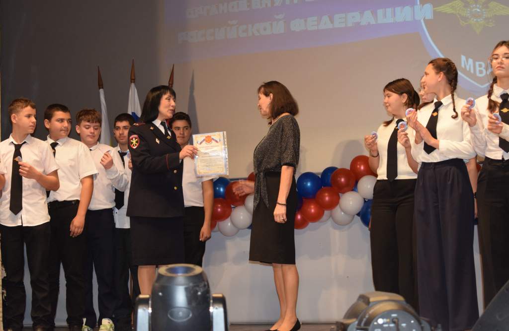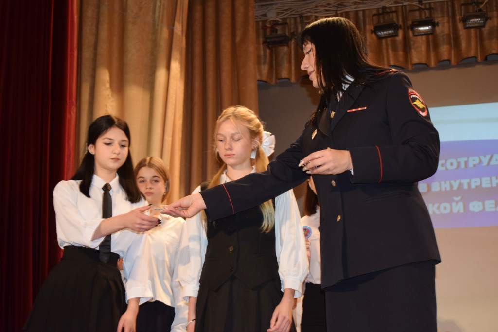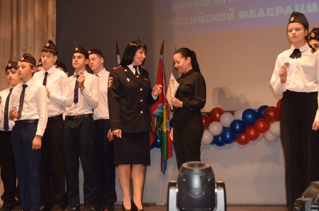 Учащимся полицейских классов Багаевских школ №1, 2, 3 и Красненской СОШ вручили значки и награды.