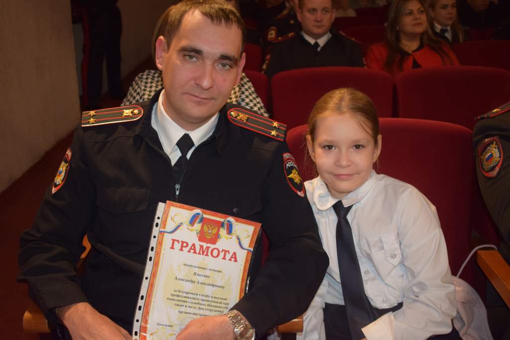 Ксения пришла на праздник вместе с папой – подполковником полиции Александром Власенко. Когда ему вручили благодарность за отличную службу, дочь радостно обняла отца и поделилась с корреспондентом газеты «Светлый путь»: