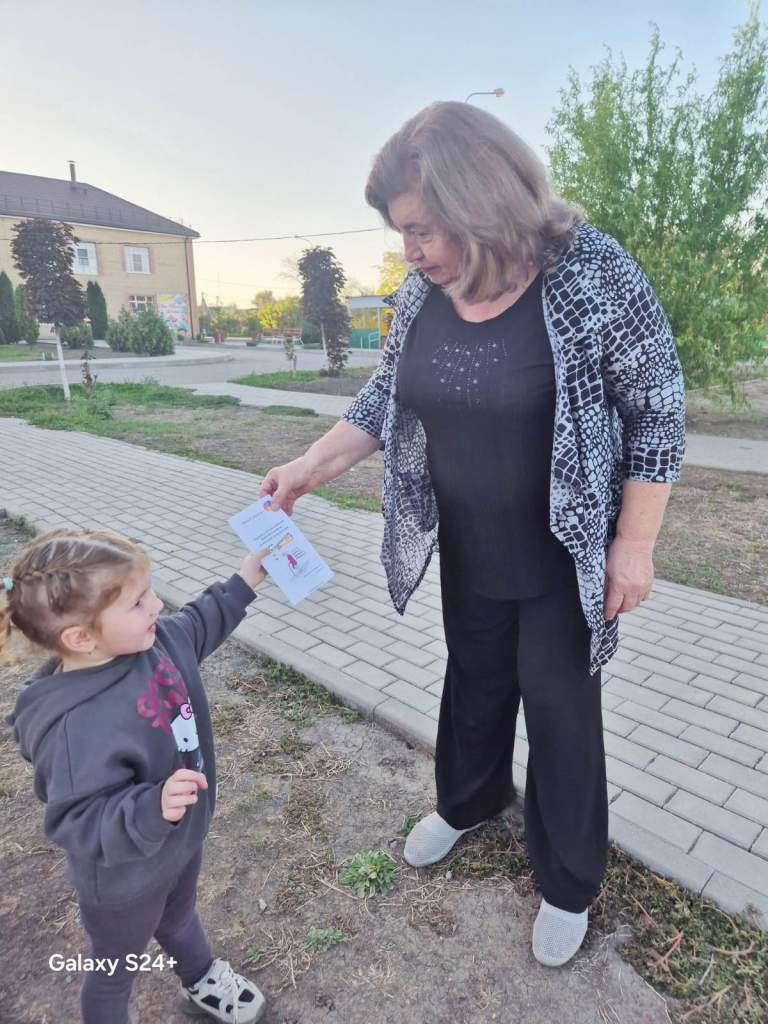 Малыши с удовольствием общались с представителями старшего поколения, раздавали буклеты и кратко объясняли их содержание. Эта практическая работа помогла им закрепить знания ПДД и научила ответственности за безопасность других.