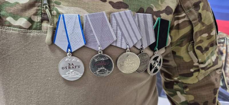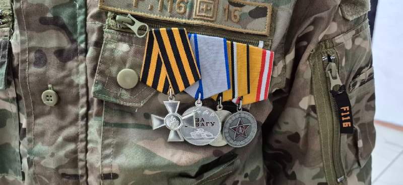 На его груди — орден Святого Георгия IV степени, медали «За отвагу», «За участие в СВО» и «За боевые отличия».