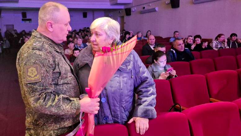 Другой участник СВО, Владимир Савицкий, служил по контракту в ЧВК «Вагнер», участвовал в боях, получил тяжелые ранения. Награжден медалями «За отвагу», «За взятие Бахмута» и «Бахмутская мясорубка». Владимир сидел в зале РДК на первом ряду и очень эмоционально наблюдал за выступлениями юных артистов.