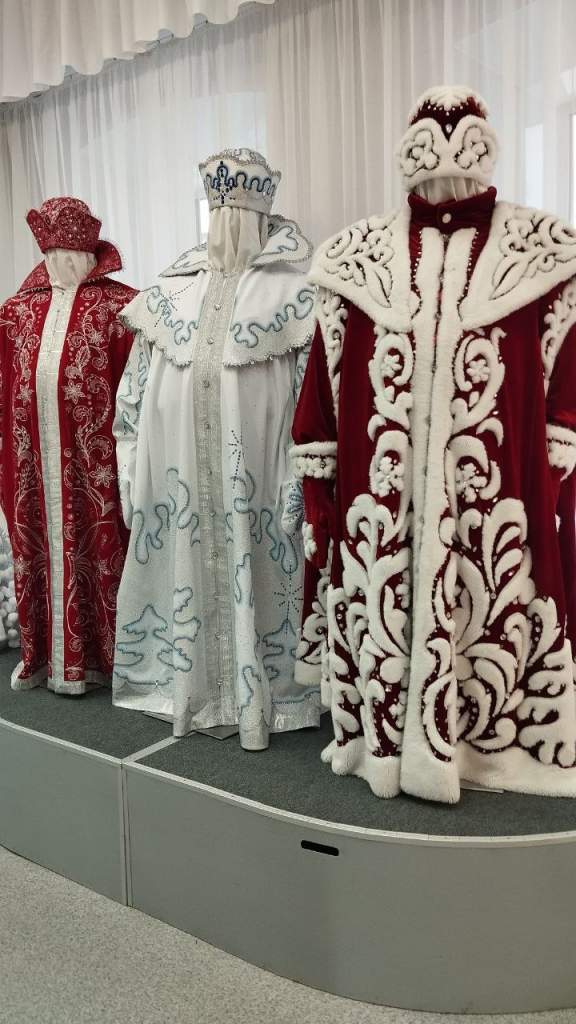 Первым делом мы попали в Дом Моды Деда Мороза. Это было настоящее царство волшебства и фантазии! Здесь стены украшены сверкающими кристаллами, а комната наполнена удивительными нарядами.