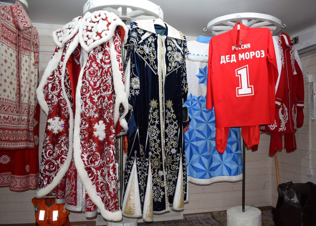 Здесь хранится его первая шуба — бордовая, праздничная парчовая с искусственной горностаевой опушкой. В этой шубе Дед Мороз ездит в Кострому, чтобы навестить свою внучку Снегурочку. Также в гардеробе есть спортивная одежда, в которой он участвовал в Олимпиаде в Сочи, и весенне-летняя коллекция из льняных тканей, готовая к встрече с теплыми днями.