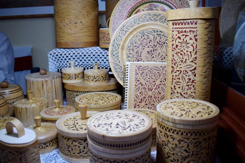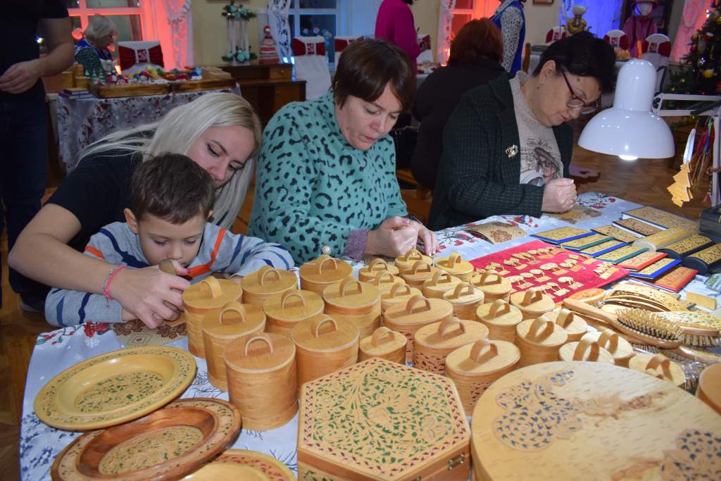 Здесь посетителей ждет знакомство с удивительным художественным промыслом Великого Устюга – резьбой и росписью по бересте. Каждый сможет создать свой уникальный узор с помощью фигурных штампиков, как делали мастера в старину. Журналисты с энтузиазмом взялись за изготовление сувенира, который будет напоминать о Великом Устюге, городе русских берёз.
