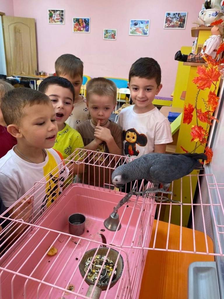 После дневного сна ребят ждал сюрприз – в гости пришли попугай Тома и хомячок Шлепа. «Звездочки» изучали животных с любопытством и восторгом, а затем угостили их вкусняшками.