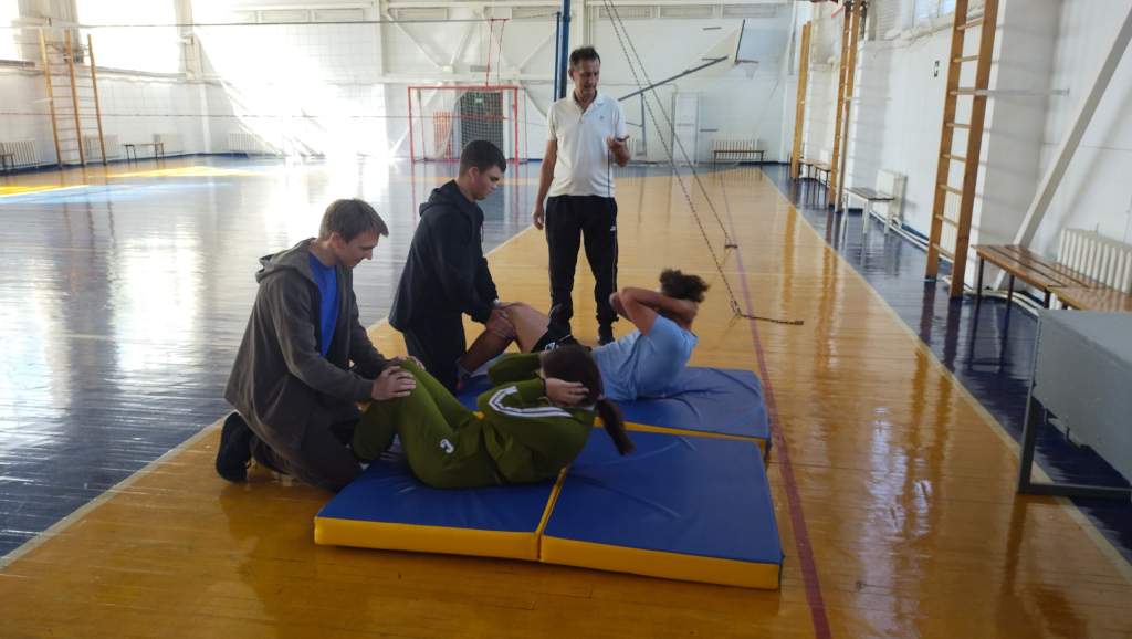 23 сентября школьники в возрасте 14-15 лет (5 ступень) и 16-17 лет (6 ступень) пробовали свои силы в таких испытаниях как наклон вперёд стоя на гимнастической скамье, прыжок в длину с места, подтягивание на высокой и низкой перекладине, сгибание и разгибание рук в упоре лёжа на полу, поднимание туловища.