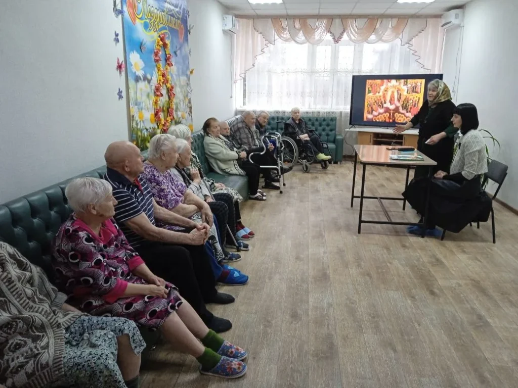 Алевтина Иосифовна и Ирина Сергеевна, добрые и мудрые женщины, принесли с собой не только тепло своих сердец, но и глубокие знания о православной вере. Они рассказали пожилым людям о Великом посте, его значении в жизни каждого верующего человека, о празднике Торжества Православия и его иконе. Беседа тронула души пожилых людей.