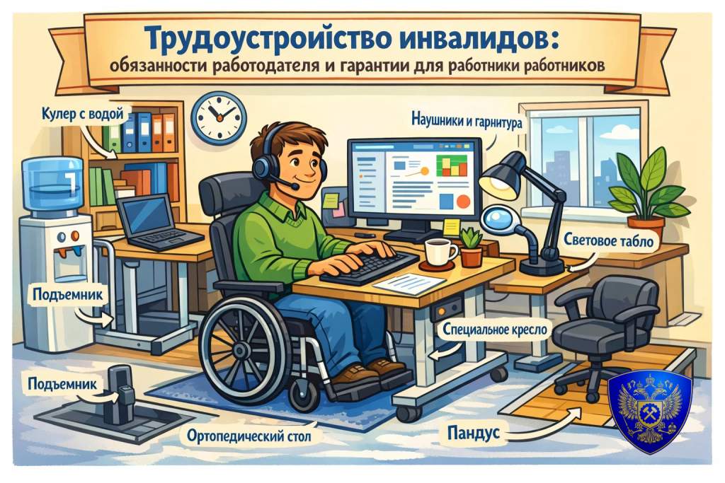 В обязанности работодателя, в частности, входит выделение или создание рабочих мест для инвалидов в рамках установленной квоты, обеспечение физической и информационной доступности рабочих мест, а также учет рекомендаций ИПРА при организации труда.