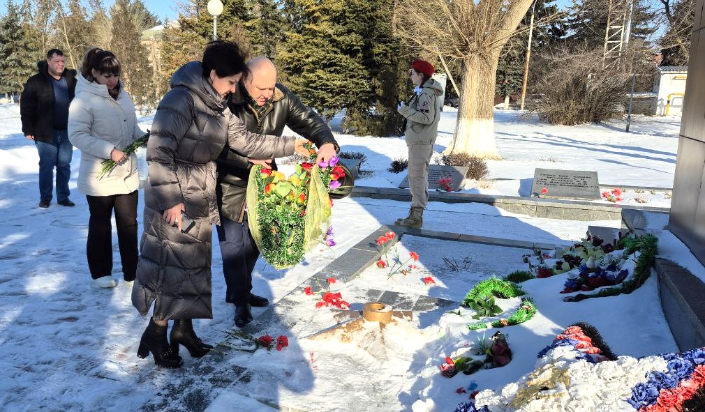 Сегодня у стеллы воинам-освободителям в парке станицы Багаевская состоялось возложение цветов представителей районной Администрации