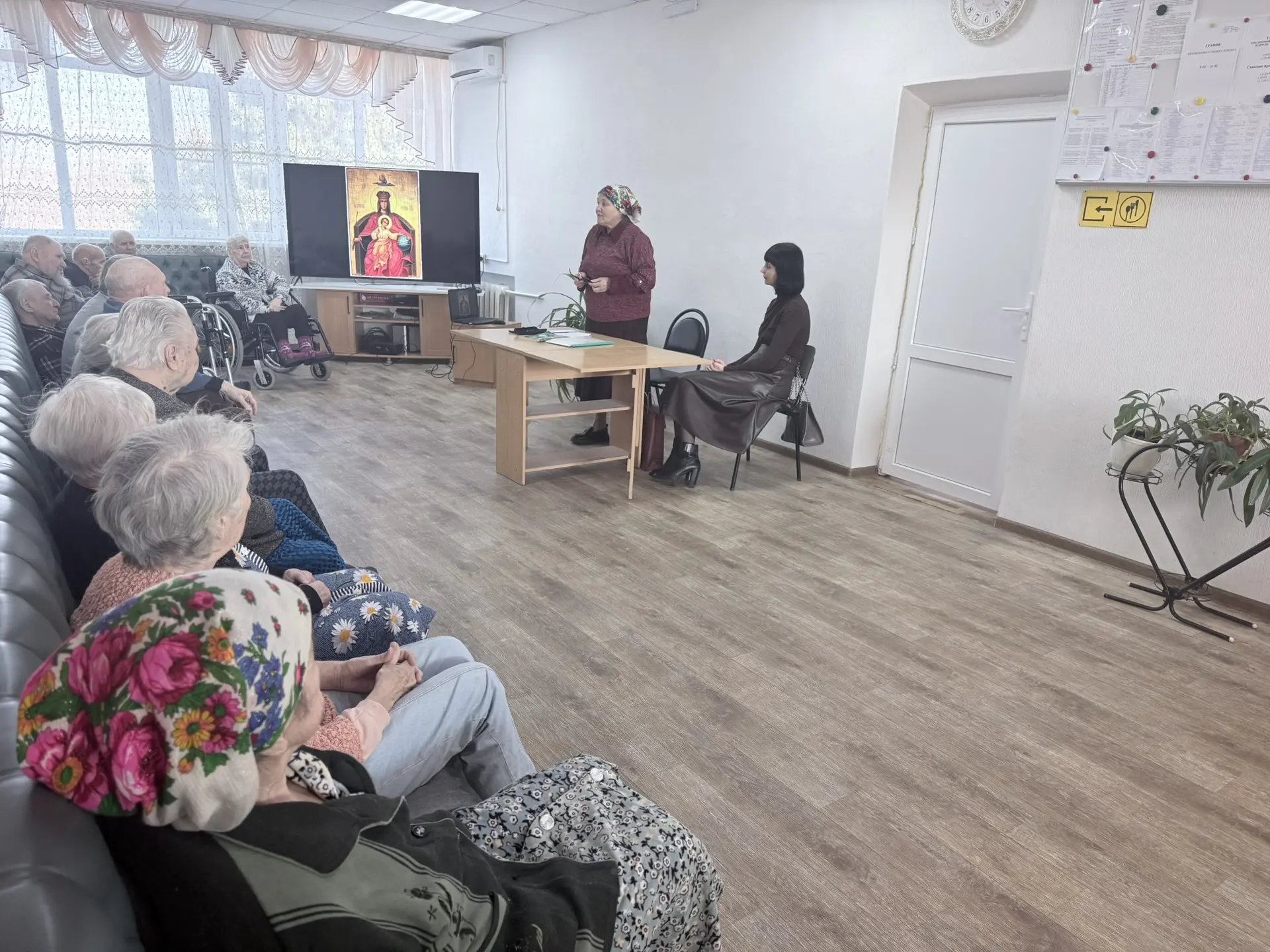 Особое внимание было уделено истории и значению нескольких почитаемых икон. Пожилые люди узнали о жизни и подвиге Марии Египетской, чья история является ярким примером покаяния и обретения спасения. Была представлена Державная икона Божией Матери, символизирующая особую заботу и покровительство Пресвятой Богородицы над Россией.