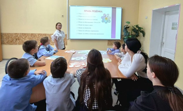Для детей провели беседу-урок правовых знаний «Права ребёнка», презентацию «Права и обязанности детей», а также совместное изготовление стенда «Права ребёнка».