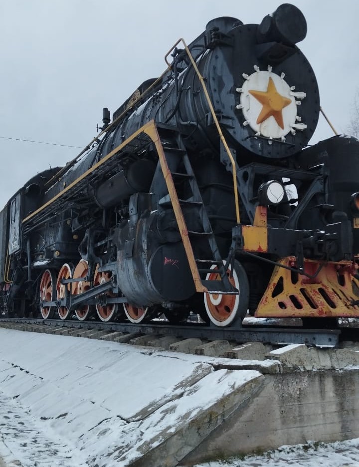 Поезд Адлер – Воркута мчится на русский Север. Высаживаемся в городе Котлас Архангельской области, ждем трансфер в Великий Устюг. Возле вокзала на постаменте паровоз — красивый выставочный экспонат в центре города сразу притягивает взгляды.