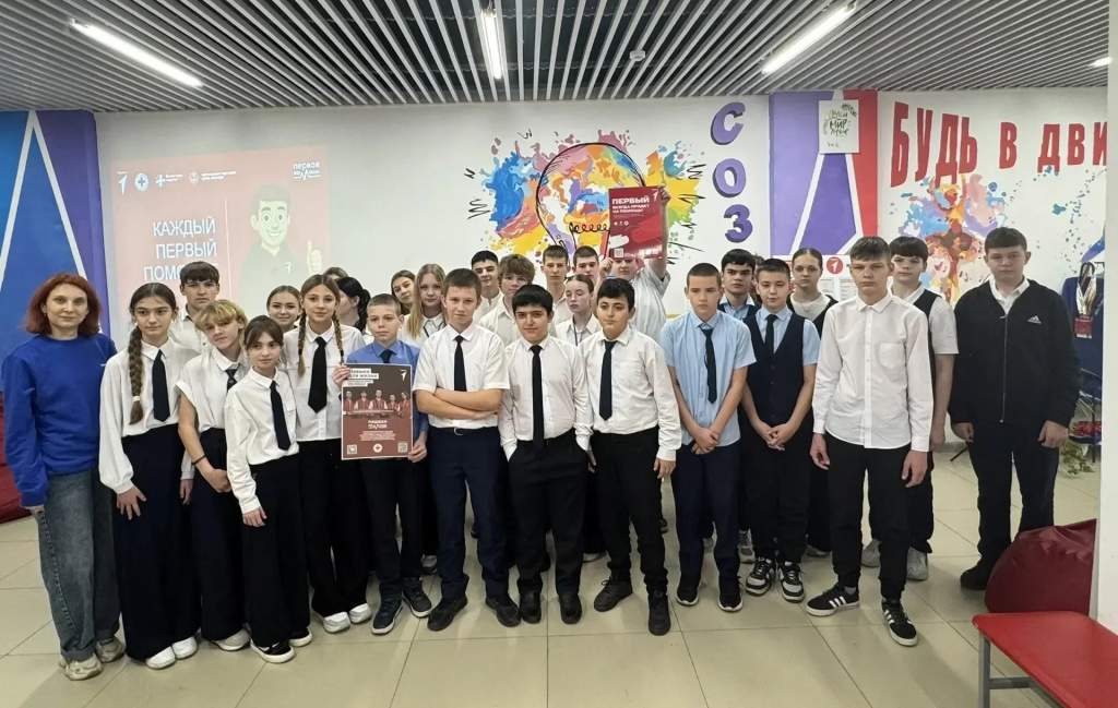 В рамках Всероссийского проекта «Первая помощь» мероприятие объединило школьников, чтобы научить основам спасения жизней в экстренных ситуациях. На занятии ребята освоили алгоритм действий при кровотечениях — одной из самых опасных травм.